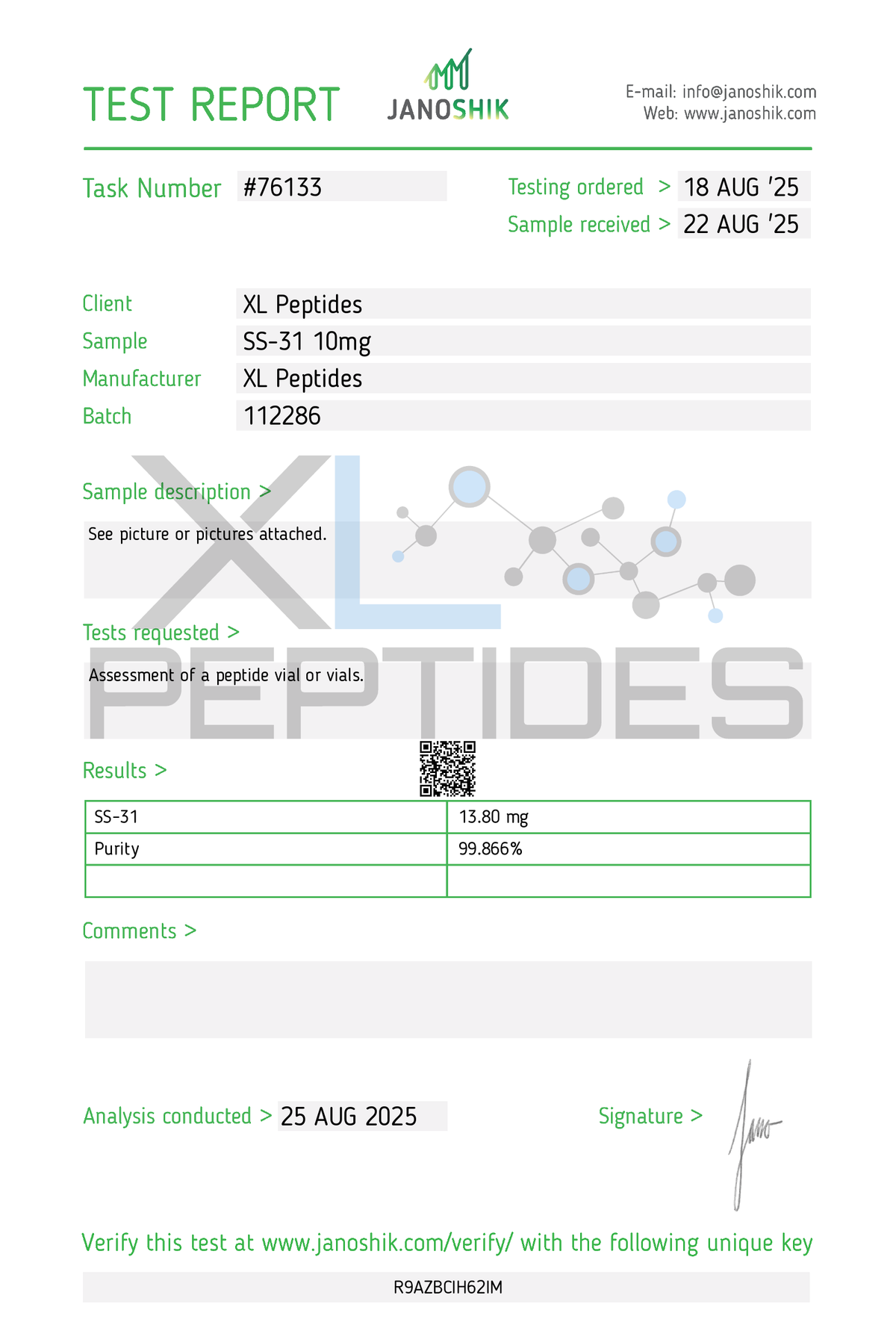 The primary function of SS-31 is to selectively localize to the inner mitochondrial membrane, where it interacts with cardiolipin. By binding to cardiolipin, SS-31 helps to stabilize the membrane structure and prevent the excessive production of damaging reactive oxygen species (ROS). This mechanism effectively protects the mitochondria from oxidative stress and improves their energy-producing capacity.
